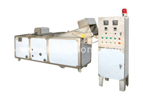 小型油炸流水線的特點:全不銹鋼制作,雙網帶輸送產品,變頻調速,定型板式網帶,防止變形,油水混合自動排渣。設有網帶翻轉機構,能隨時清理油內漂浮殘渣和網帶上殘渣,自動控溫,使油炸產品有一個松脆誘人的穩(wěn)定外觀,使用安全.方便.衛(wèi)生,是理想的油炸設備,本機特別適用于快餐食品,休閑食品,方便食品的油炸,廣泛應用于學生營養(yǎng)快餐,食品加工,酒店機關,企業(yè)單位等,適合炸制時間在10秒-3分鐘內的用戶需要