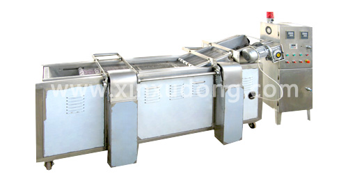 小型油炸流水線的特點:全不銹鋼制作,雙網帶輸送產品,變頻調速,定型板式網帶,防止變形,油水混合自動排渣。設有網帶翻轉機構,能隨時清理油內漂浮殘渣和網帶上殘渣,自動控溫,使油炸產品有一個松脆誘人的穩定外觀,使用安全.方便.衛生,是理想的油炸設備,本機特別適用于快餐食品,休閑食品,方便食品的油炸,廣泛應用于學生營養快餐,食品加工,酒店機關,企業單位等,適合炸制時間在10秒-3分鐘內的用戶需要